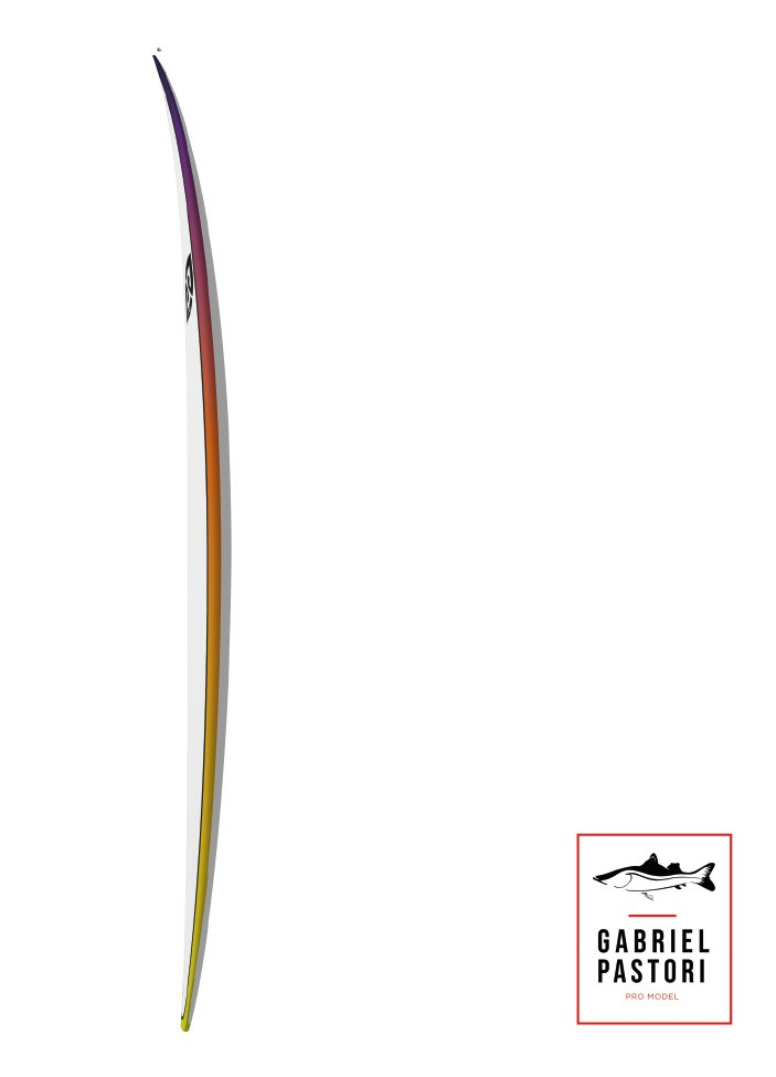 Gabriel Pastori is a surfer who has always searched a more consistent line, with stronger maneuvers and well-defined curves, his personal surfboard ranges between 19 '1/2 "and 19' 5/8" middle and 2 3/8 " Thickness, and this model can be used with some variations for more or less depending on the weight and height of the surfer. The most commonly used tails are Round Squash or Round for heavier waves.